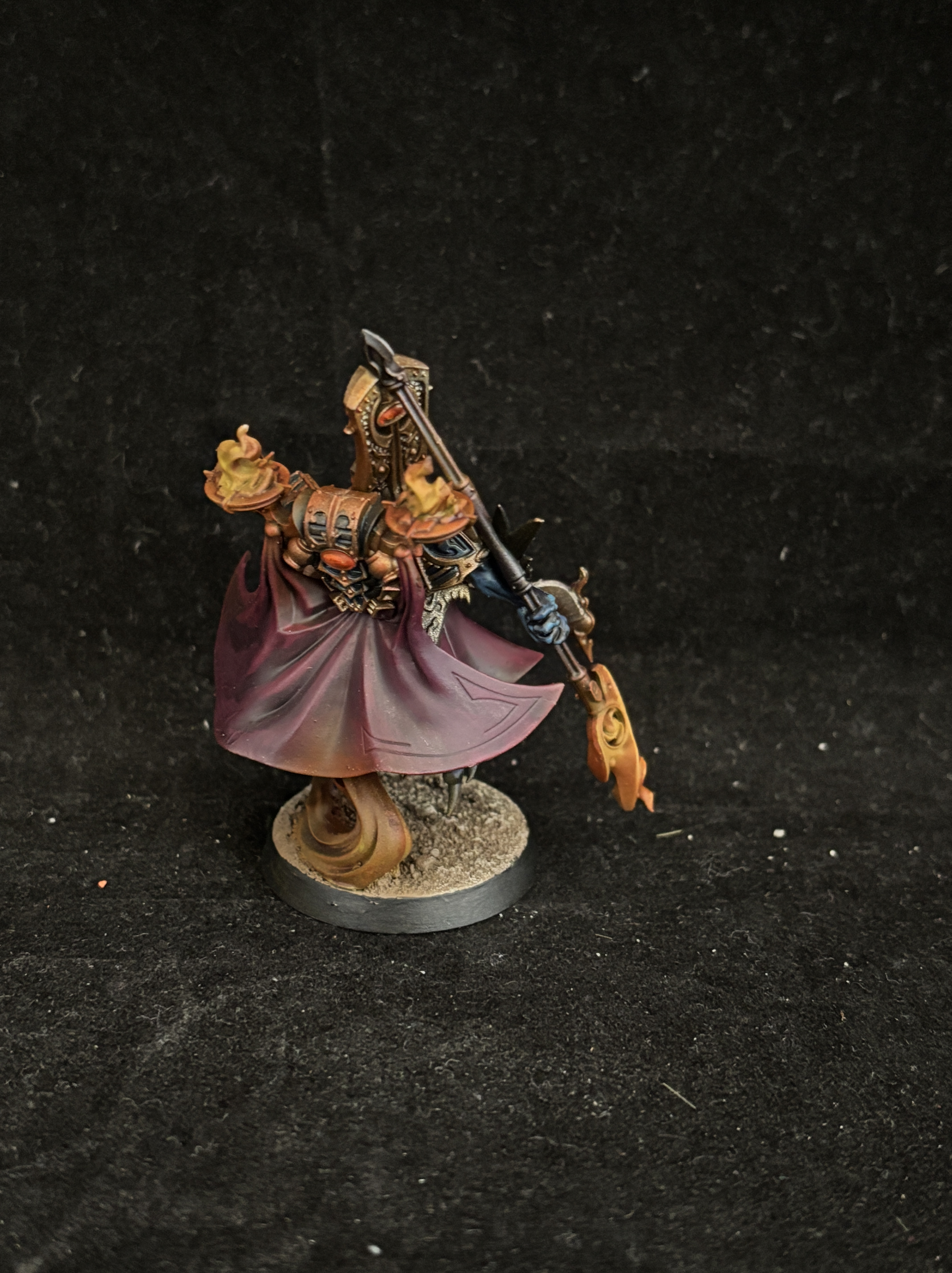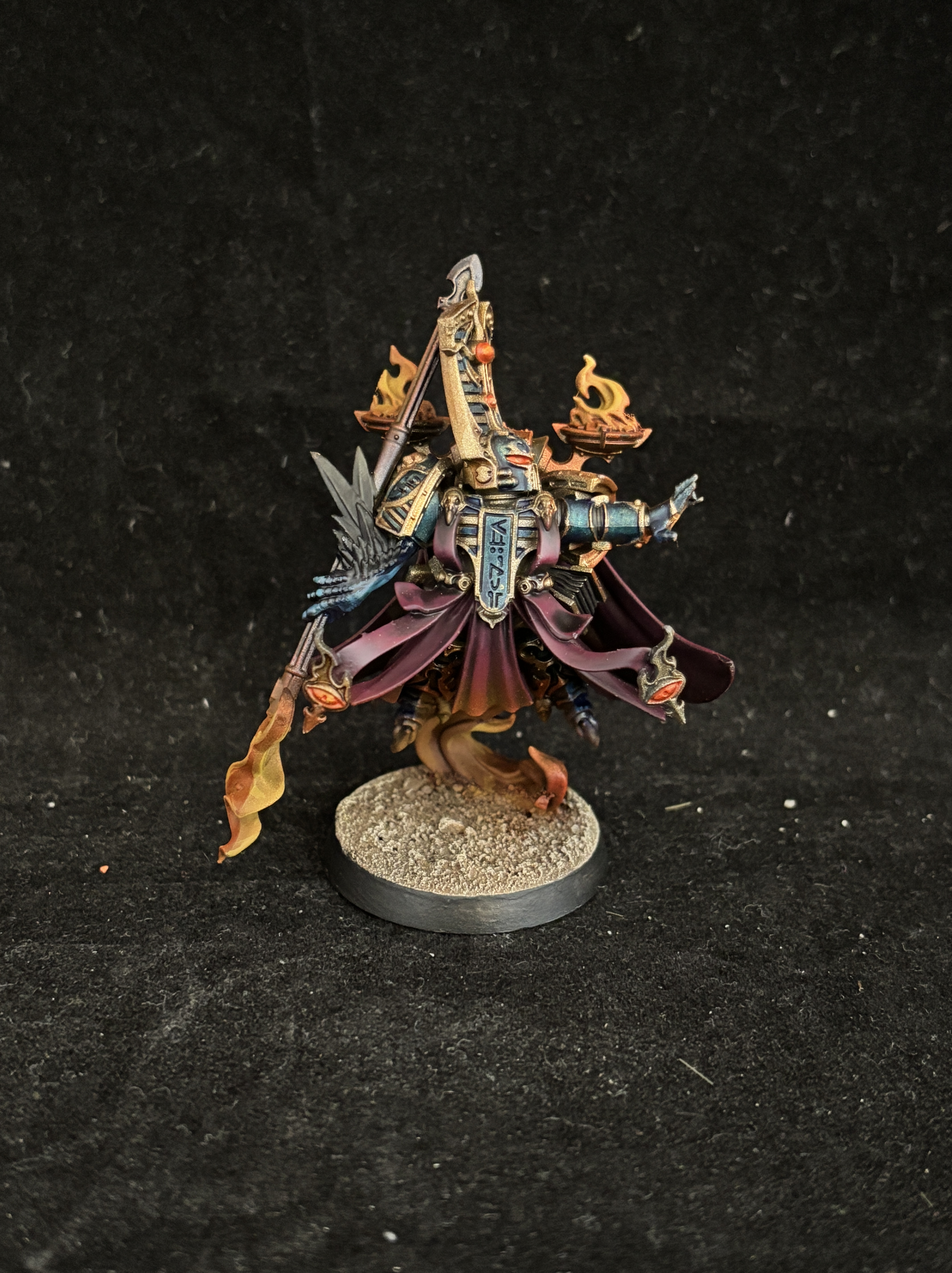 The orange glow is not the default choice for most Thousand Sons army. One reason I like it is that it really clashes with blue and burgundy, making it a great accent color. It also happens to be the owner of the army’s favorite color, so it would’ve been foolish not to include it.