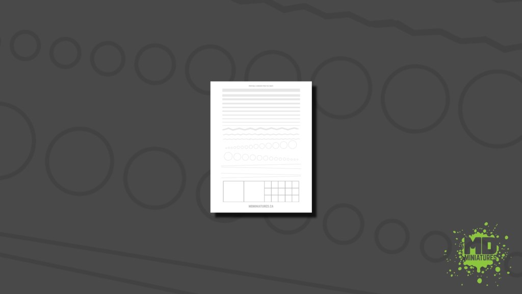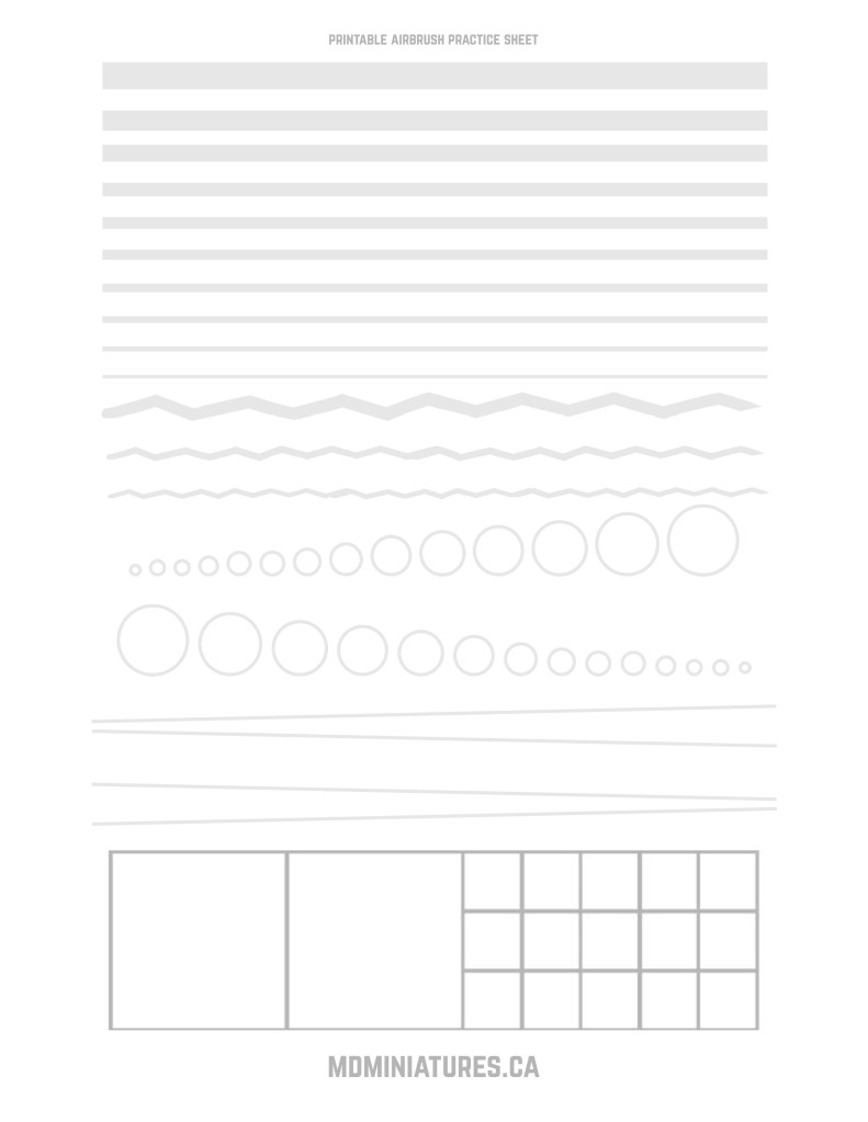 First, full disclaimer, this sheet is mostly overkill. With miniatures, you rarely, if ever, need to actually draw a straight and even line. But learning how to do it does make you understand how to control the trigger, and have a steady hand. So while you’re not actively painting lines, those 2 aspects separately are fundamentals.