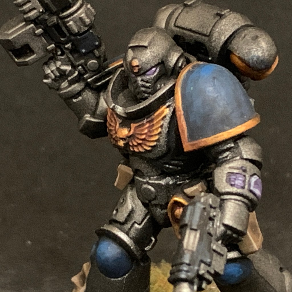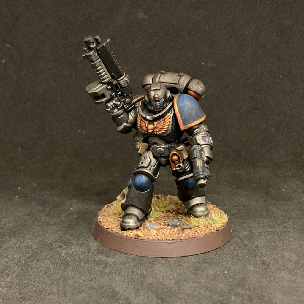 A Space Marine Lieutenant is all about leading from the front. This one, from the Dark Imperium boxed set, is not much of a fighter but more of a gunner. There’s so many variants out there, you can pretty much find one with whatever gear you like.