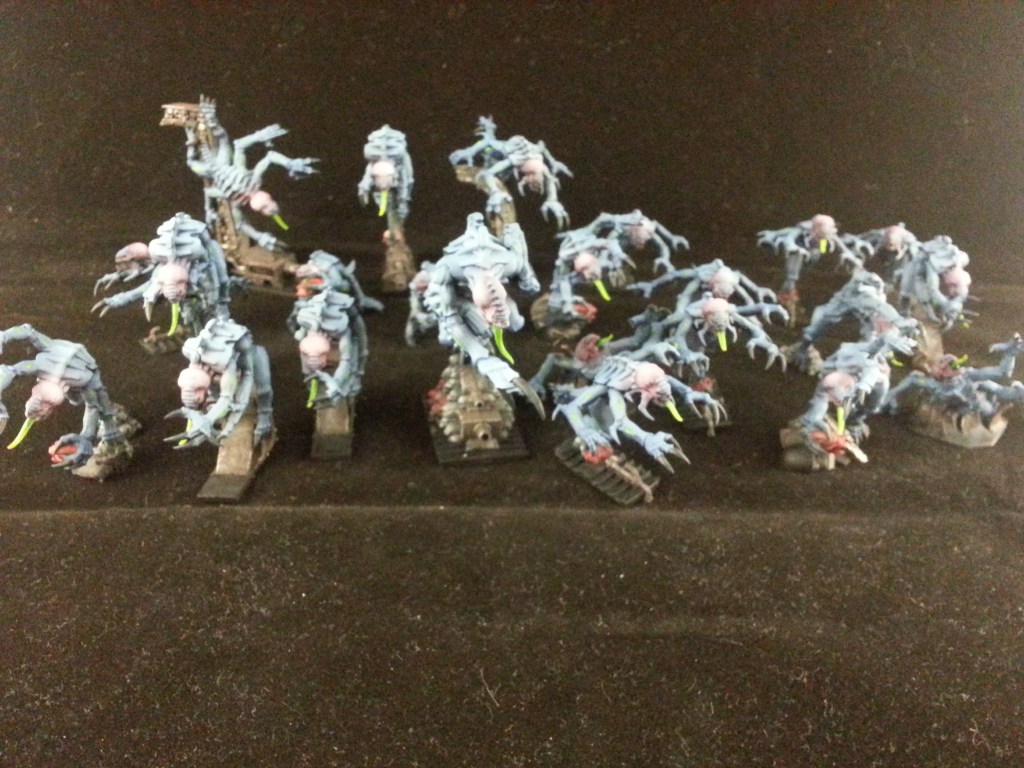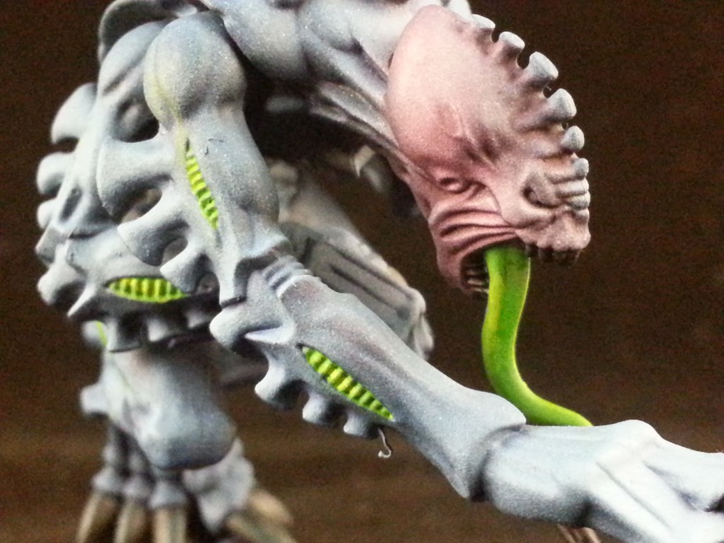 One thing I remember about this project is that I followed a tutorial on painting blue horrors to get the main technique for the genestealers, and since I was really please with the result, I followed a tutorial by the same artist about painting pink horrors to paint the heads.